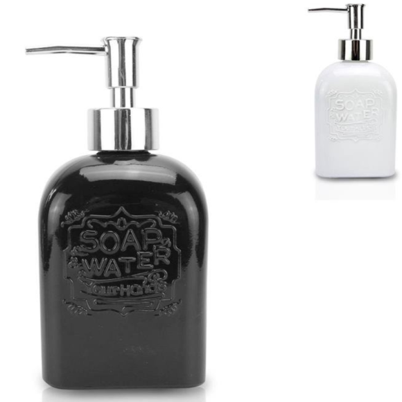SABONETEIRA VIDRO 400ML PRETA/BRANCA