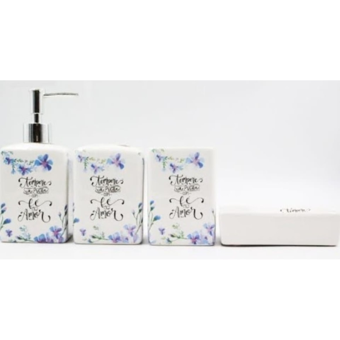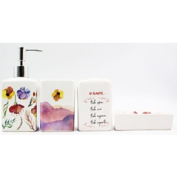 KIT 04 BANHEIRO CERAMICA "AMOR" QUADRADO AZUL/ROSA