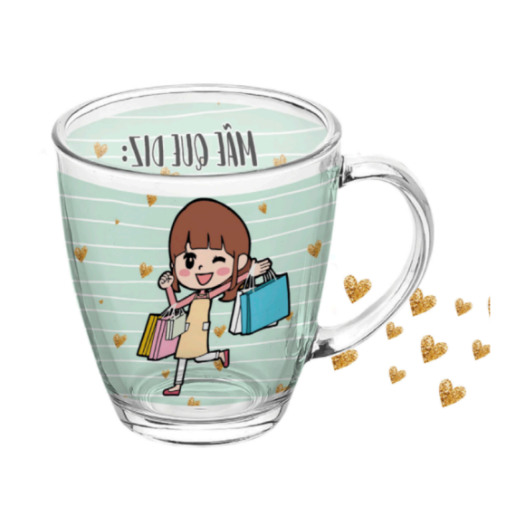 CANECA VIDRO 380ML ESTAMPAS "MAE-FRASE"