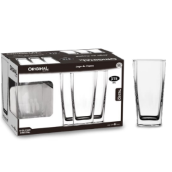 JOGO 6 COPO VIDRO 315ML CRYSTAL FD-QUADR