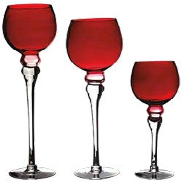 JOGO 3 CASTIÇAL VIDRO 30/35/40CM VERMELHO
