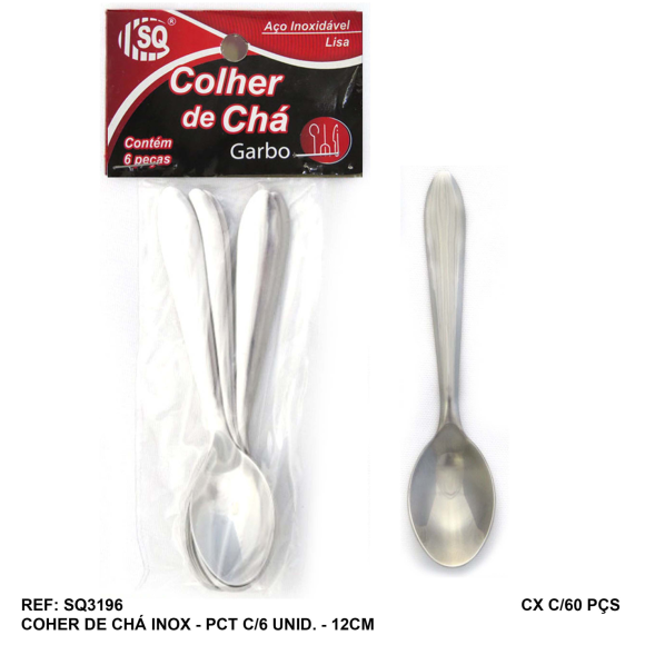 2. KIT 06 COLHERES DE CHA INOX 12CM GARBO
