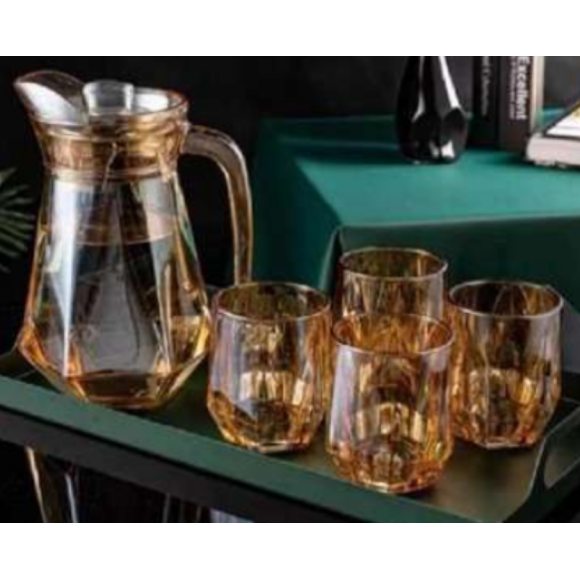 JOGO REFRESCO VIDRO 5PC AMBAR HEXAGONAL