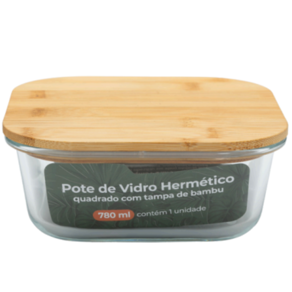 POTE VIDRO 800ML QUADRADO TAMPA-BAMBU