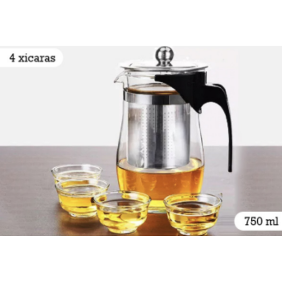 CHALEIRA VIDRO 750ML + 4- XICARAS 100ML