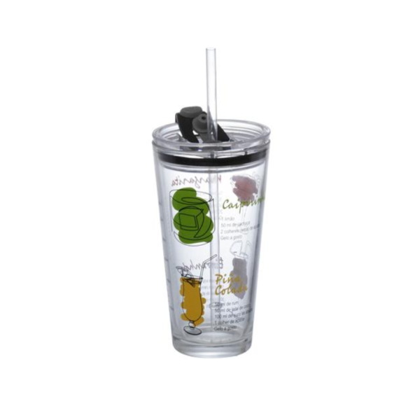 2. COPO VIDRO 450ML CELEB C/CANUDO+TAMPA